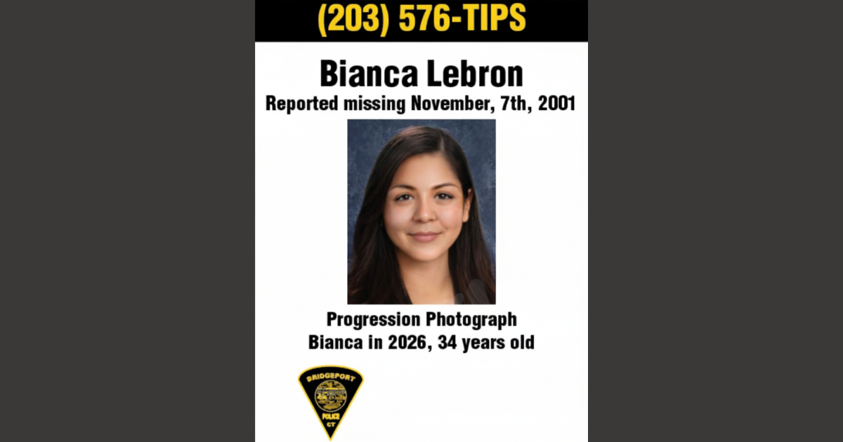 Bridgeport police and NCMEC released a 6th age-progressed image of Bianca Lebron on March 18 — showing what the woman missing since 2001 may look like at 34. Detectives say strong leads remain.